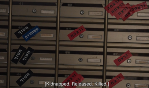 • There is a haunting visual that shows school mailboxes with tape over them that reads “Kidnapped”, “Released” or “Killed”. How devastating.