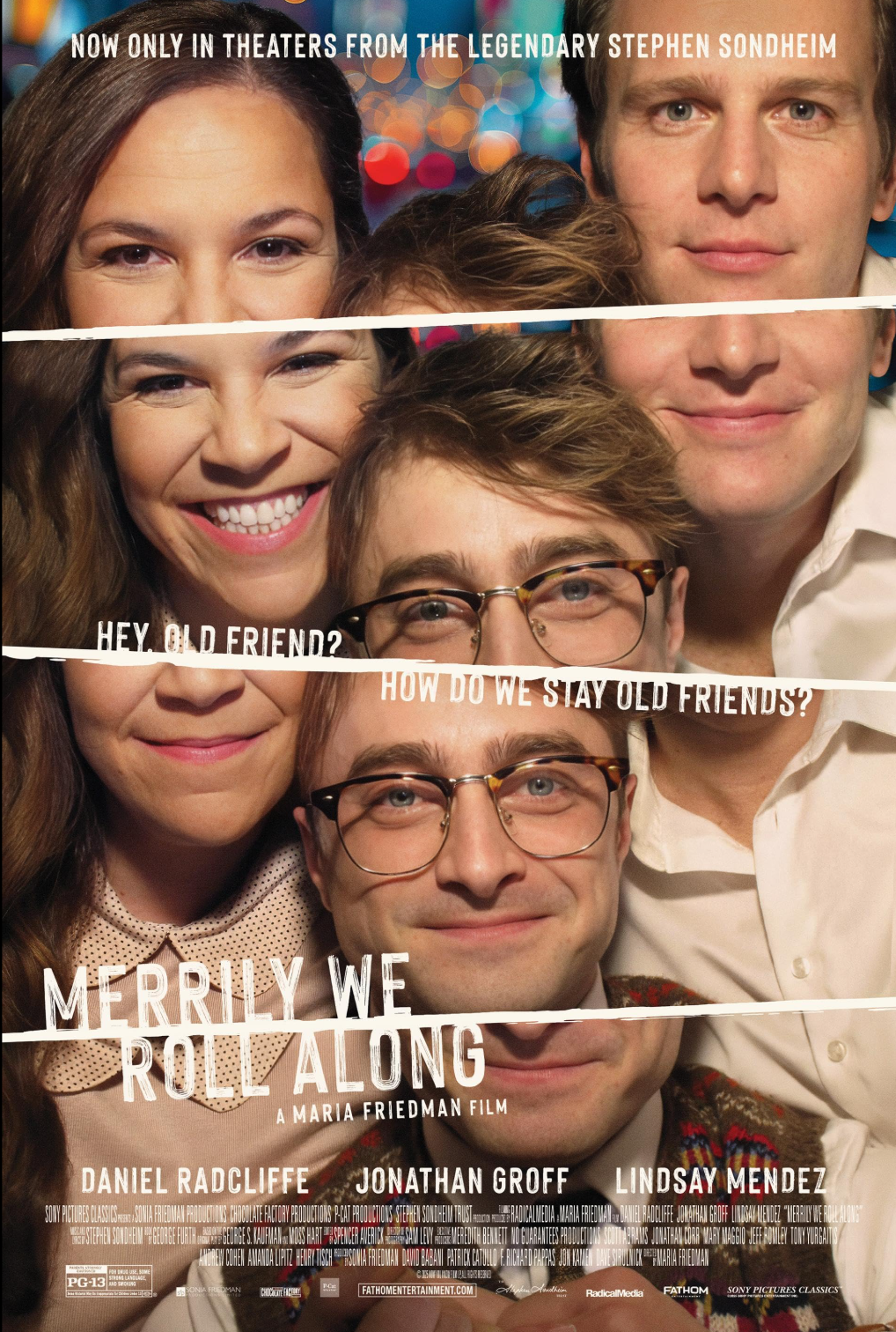 The musical “Merrily We Roll Along” is based on the 1934 play of the same name by George S. Kaufman and Moss Hart. The film was directed by the charming Maria Friedman. I loved her when she sang and acted in the Broadway musical Joseph and the Amazing Technicolor Dreamcoat.