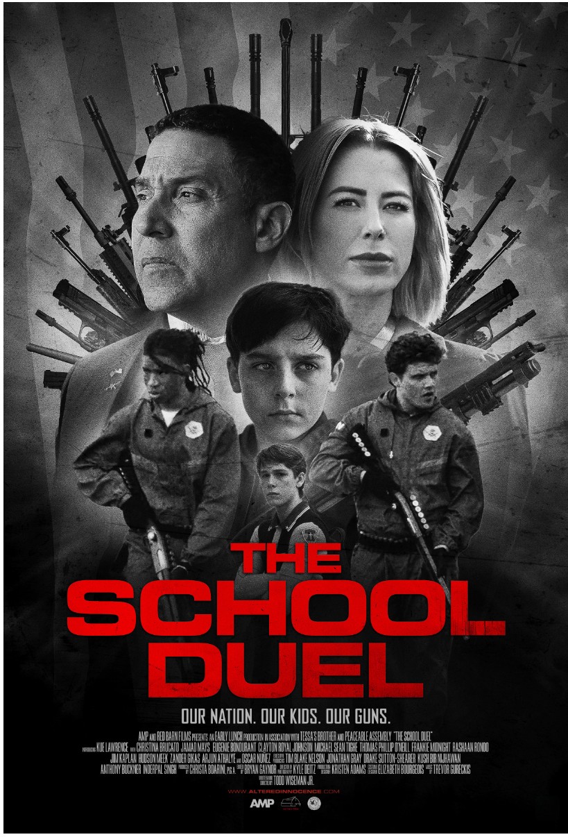 The School Duel is a low-budget, yet provocative dystopian thriller about fear, manipulation, gun rights, and is one of the most brazenly political genre films in recent memory. The film was written and directed by Todd Wiseman Jr. In a 2025 interview, he expressed frustration with the “illogical” intersection of “God, guns, and Trump” in Florida culture and spoke about the “f***ed up” state of the country regarding mass shootings, stating that “there needs to be change now.”