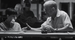 Imagery: The film is shot in grim black and white, creating an uneasy and bleak atmosphere.